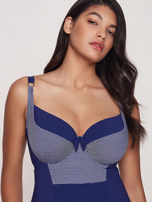 Wykonany z najwyższą starannością i dbałością o szczegóły ten jednoczęściowy strój posiada miękkie miseczki o kroju soft K26, który nadaje piersiom kształt tulipana. Dolna część miseczki posiada pionowe cięcie, które łącznie z zastosowaną fiszbiną bardzo dobrze kształtują i podtrzymują również cięższy biust. Strój wyposażono w regulowane ramiączka oraz solidne metalowe zapięcie z tyłu.