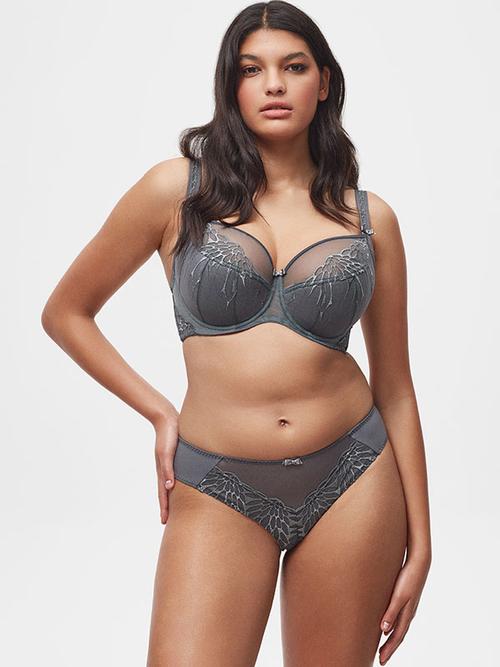 Bestsellerowy model Sara w nowym kolorze głębokiej szarości z wyróżniającym się motywem haftu w kształcie delikatnych płatków kwiatów, które dzięki lekkiemu połyskowi nadają mu wyrazistości i elegancji.
